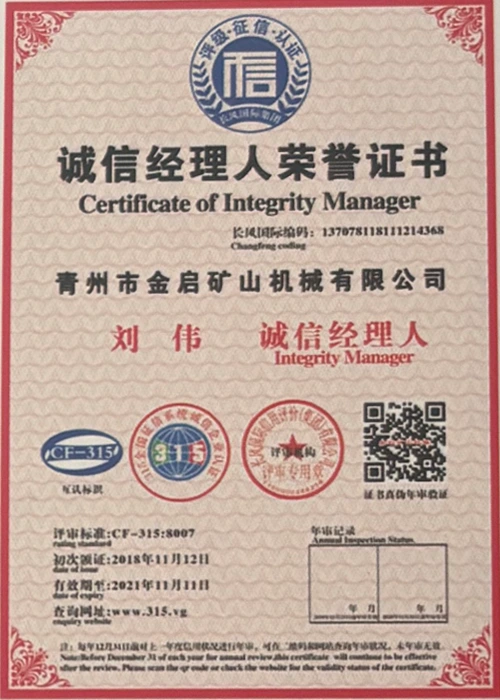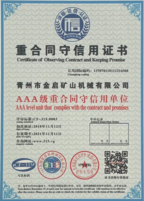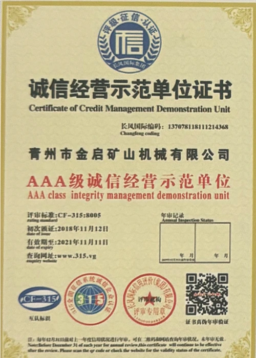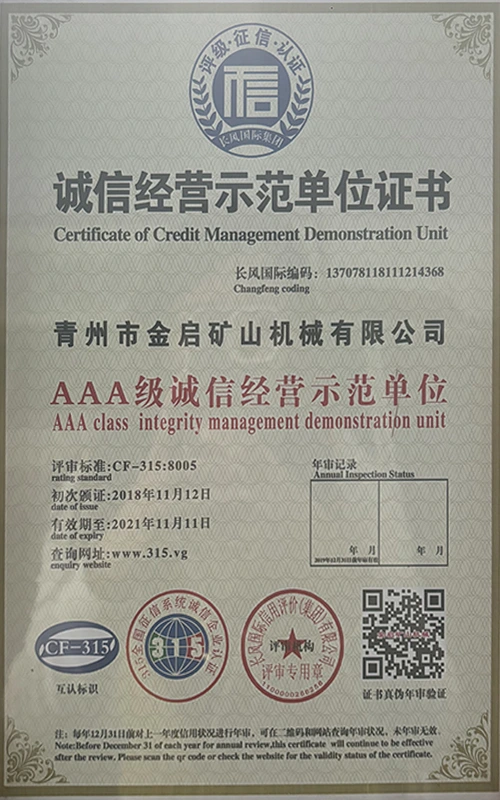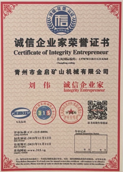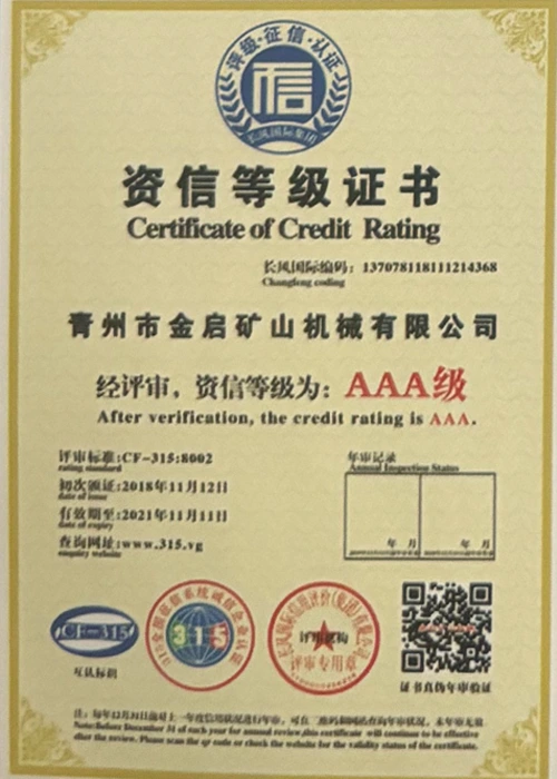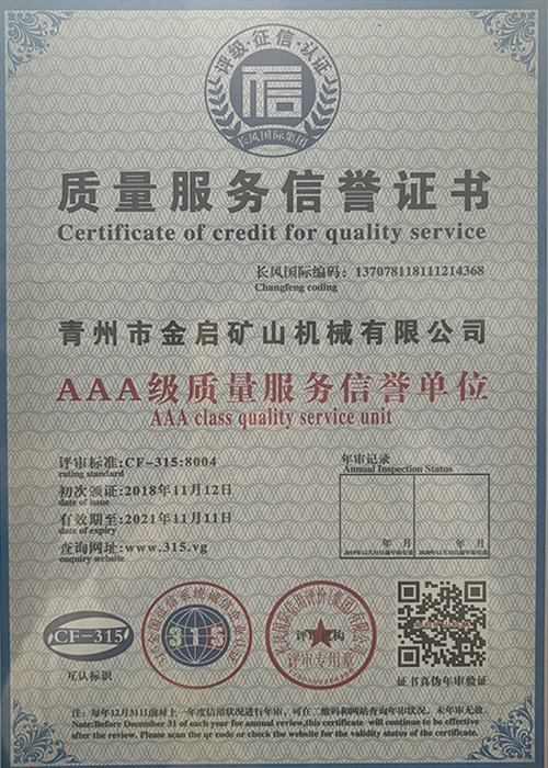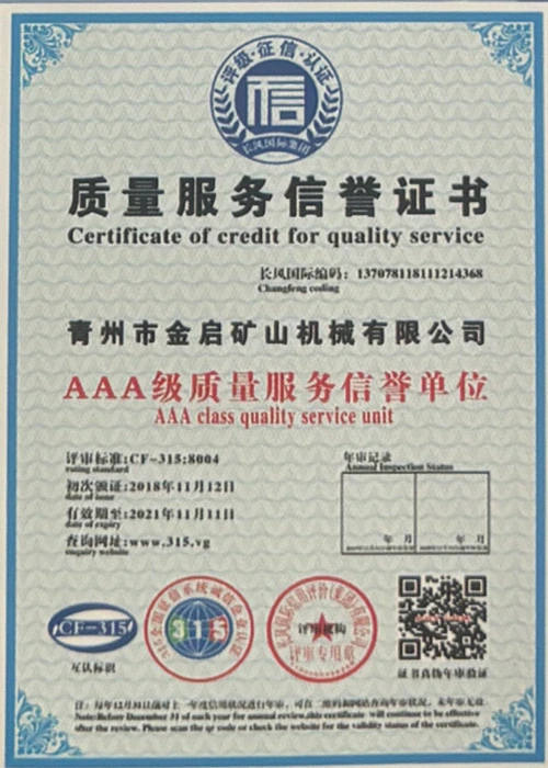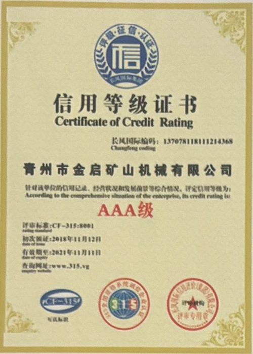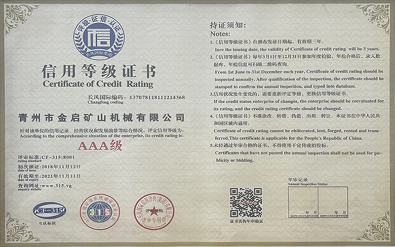 పరిశ్రమలో సంవత్సరాల లోతైన అనుభవంతో, కఠినమైన నాణ్యత నియంత్రణ మరియు నిరంతర సాంకేతిక ఆవిష్కరణలపై ఆధారపడి, ISO నాణ్యత నిర్వహణ వ్యవస్థ ధృవీకరణ, మైనింగ్ ఉత్పత్తి భద్రత ధృవీకరణ, అలాగే బహుళ ఆవిష్కరణల పేటెంట్లు మరియు యుటిలిటీ మోడల్ కోసం సాంకేతికతను మెరుగుపరిచే సాంకేతిక పరిజ్ఞానాన్ని మెరుగుపరచడం వంటి అనేక అధీకృత అర్హతలు, ధృవపత్రాలు మరియు పేటెంట్ సర్టిఫికేట్లను కంపెనీ పొందింది. లోతైన సాంకేతిక బలం మరియు కంప్లైంట్ ఉత్పత్తి హామీని ప్రదర్శిస్తుంది.