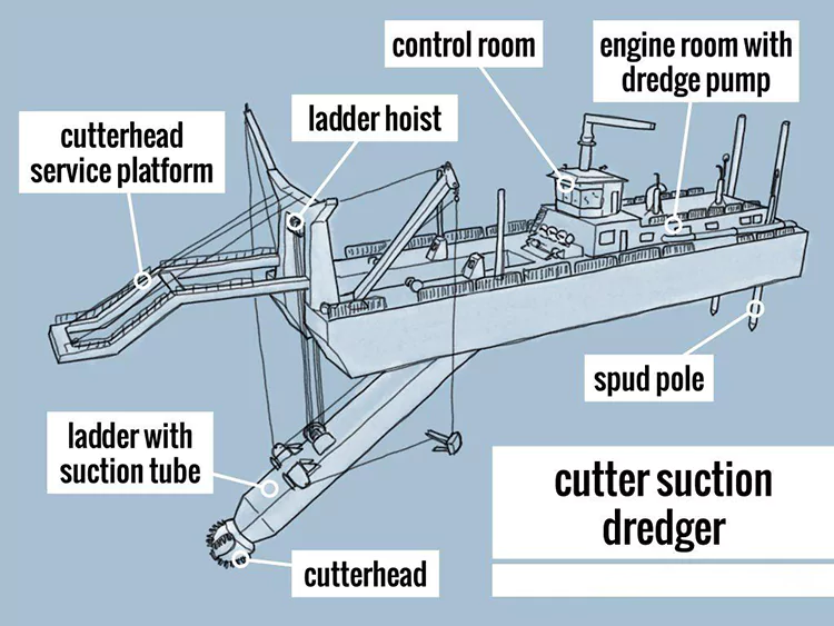 ట్రైలింగ్ సక్షన్ హాప్పర్ డ్రెడ్జర్స్‌తో పోలికకట్టర్ చూషణ డ్రెడ్జర్‌లకు స్థిర స్థానాలు అవసరం మరియు డిశ్చార్జ్ పైపుల ద్వారా స్థిర స్థానాలకు బురదను రవాణా చేయాలి; ట్రయిలింగ్ చూషణ తొట్టి డ్రెడ్జర్‌లు స్వీయ-చోదకమైనవి, ట్రయిలింగ్ హెడ్‌లతో బురదను పీల్చుకుంటాయి, దానిని వారి స్వంత మడ్ హాప్పర్‌లలో నిల్వ చేస్తాయి, ఆపై అన్‌లోడ్ చేయడానికి ప్రాంతాలను పాడుచేయడానికి ప్రయాణించబడతాయి. అవి అధిక వశ్యతను కలిగి ఉంటాయి మరియు బహిరంగ సముద్ర ప్రాంతాలు మరియు జలమార్గ నిర్వహణకు అనుకూలంగా ఉంటాయి.