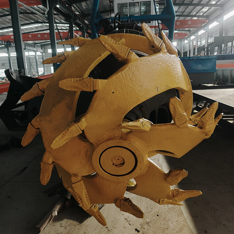 ముందు భాగంలో హైడ్రాలిక్‌తో నడిచే కట్టర్ హెడ్‌తో అమర్చబడి, ఇది గట్టి నదీగర్భ పరిస్థితులలో సాంప్రదాయ బంగారు డ్రెడ్జర్‌ల యొక్క తక్కువ సామర్థ్యాన్ని పరిష్కరిస్తూ, కుదించబడిన బంగారు-బేరింగ్ ఇసుక పొరలను కత్తిరించడానికి మరియు విచ్ఛిన్నం చేయడానికి తిరుగుతుంది. ఉదాహరణకు, గట్టిపడిన ఇసుక పొరలతో ఉన్న నదులలో, కట్టర్ హెడ్ ధాతువు పదార్థాలను పంపగల స్థితిలోకి చూర్ణం చేయగలదు.