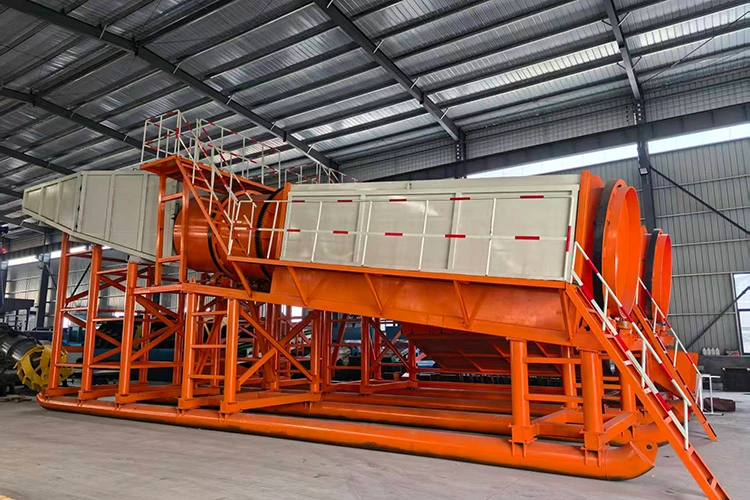 మొబైల్ గోల్డ్ మైనింగ్ ప్లాంట్: ఇది ల్యాండ్-బేస్డ్ ప్లేసర్ గోల్డ్ మైనింగ్కు సంబంధించిన ప్రధాన సామగ్రి, ఇందులో సౌకర్యవంతమైన పునరావాసం ఉంటుంది. ఇది ఫీడింగ్, స్క్రీనింగ్ మరియు గోల్డ్ సెపరేషన్ యొక్క పూర్తి-ప్రాసెస్ ఫంక్షన్లను అనుసంధానిస్తుంది. ట్రామెల్ స్క్రీన్ ద్వారా రాళ్లను తీసివేసిన తర్వాత, ధాతువు స్లర్రీని స్లూయిస్ బాక్స్లు మరియు సెంట్రిఫ్యూగల్ కాన్సెంట్రేటర్ల వంటి పరికరాల ద్వారా వేరు చేస్తారు.